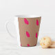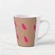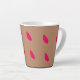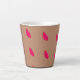 Linhas de pétalas rosa-escuras e escuras, sintéticas e vibrantes caem como grãos de café numa superfície laranja acastanhada nesta xícara de café.