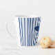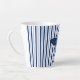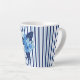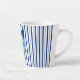 Caneca De Café Latte Estrias florais elegantes, azul monocromático