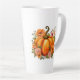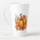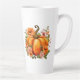 This ceramic latte mug is shown with a lovely fall floral pumpkin print.