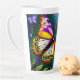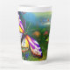 A caneca latta artística e colorida apresenta trabalho de arte digital assistida por IA que destaca a jornada da borboleta em um mundo de fantasia mágica