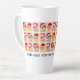 FAZ MUITO ESPAÇO PARA Cogumelos de Natal CRISTO Latte Mug com TEXTO PERSONALIZÁVEL. A design mostra uma grade de cogumelos vestindo chapéus de Santa com painéis coloridos de fundo de cogumelo, banana e rosa-claro. Personalize o texto com seu nome ou texto favorito. Presentes correspondentes disponíveis.