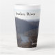 Uma grande caneca de bebida com a fotografia do rio Feather.