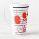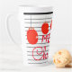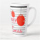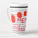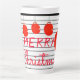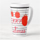 Uma grande caneca latta, o texto feliz de Natal pode ser mudado para qualquer mensagem, e a cor branca de fundo com no design pode ser alterada para qualquer cor.