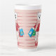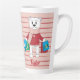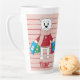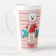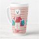 Uma grande caneca de latte de Feriado com um caricatura de urso polar a comprar no fundo rosa com listras vermelhas. Personalize-o com seu nome.
