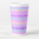 Um design bonito com camadas de linhas onduladas preenchidas com uma paleta colorida de rosa, roxo, azul, turquesa e coral.