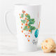 Para aqueles que gostam de um olhar de feriado mais contemporâneo, esta coleção de florais e ornamentos é para você. Este Latte Mug apresenta cores e designs de feriados não tradicionais. A vegetação floral tem um sorvete de bagas de laranja e os ornamentos são lacrimejantes, laranja e verde limão. O texto diz "Paz na Terra" pode ser personalizado.