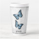 Caneca De Café Latte Floral Personalizado Latino da Borboleta Azul