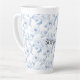 Caneca De Café Latte Flores brancas azuis Bonito chic
