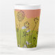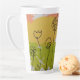 Flores bonito desenhadas à mão com caules longos, todos seguidos, antes de um fundo colorido de verde, ouro e pêssego, tudo simplesmente desenhado como uma obra de arte mais refrescante.