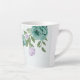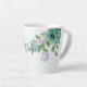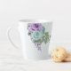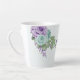 Caneca De Café Latte flores roxas azuis românticas folhagem