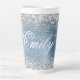 Garota cintilante prateada cintilante em um gráfico de arte digital em formato metálico azul claro. Personalize o estilo de fonte clássico de caligrafia do rico para criar sua própria caneca latta grande. Uma caligrafia branca elegante clássica com sombra azul na trabalho de arte digital moderna que impressão como uma foto.