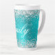 Caneca De Café Latte Folha Azul Turquesa de Silver Personalizada