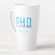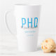 Uma caneca latta de graduação de doutorado que apresenta o nome do formando, o campo de estudo e a data de formatura. A caneca inclui o nome em uma fonte de script de escrita manual e um design azul e preto. É excelente como um guardião ou um favor do partido. Basta adicionar as informações do formando, adicionar esta caneca ao seu carrinho e parabéns neste marco importante! Formando Guarda- Azul Nome Preto Grau PhD Latte Mug Holidayday Design | ©Melissa Patton - Designer