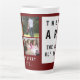 Design apresenta o ditado: "Estes são os bons velhos tempos!" em impressão preto contra um fundo branco na frente. O reverso exibe quatro fotos, juntamente com a frase "Aproveite a cada minuto", impressa em branco logo abaixo das fotos. Um fundo brilhante.