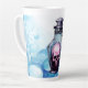 Frasco fantasma com crânio simbolizando veneno, sobre fundo azul de aquarela