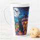 Caneca De Café Latte Gato Negro na Paisagem Halloween Encantada