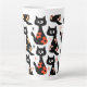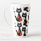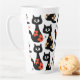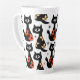 Caneca De Café Latte Gato Preto Floral Retro (Branco)