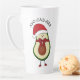 Esta humorística caneca latte "puny" alta apresenta uma linda dama de abacate com um arco vermelho e um chapéu de Papai Noel com as palavras "AVO-CAD-HER."