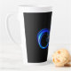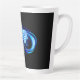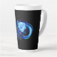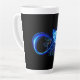 Luminous infinity symbol with glowing, beautiful, lushly blooming rose made of blue flames on black background.