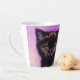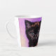 Latte Mug com um gato estilo Van Gogh com fundo roxo. Este gatinho preto olha para o espectador adoravelmente! Um presente de excelente para amantes de gatos e colecionadores de arte holandeses!
