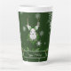 Aproveite o café da manhã ou o café da tarde neste feriado com uma Reindeer Verde Latte Mug. Mug design apresenta uma rena festiva vestindo uma coroa de Natal enfeitada com bagas ocas e flocos de neve caindo e uma caixa decorada com terra natalícia com o ditado "Tenham uma xícara de alegria". Itens adicionais de presentes e feriados disponíveis com este design também.