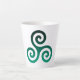 Símbolo verde Triskele. O símbolo Triskele ou Triskelion é constituído por três espirais interpressas ou três braços como se estivesse a sair do seu centro. Esse símbolo celta de movimento ou ação representa os três mundos: celeste, físico e espiritual.