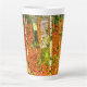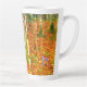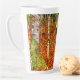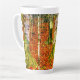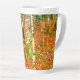Latte Mug com a pintura Farmhouse de Gustav Klimt com Birch Trees (1903). Uma paisagem autóctone de folhas de laranja numa floresta de pássaros com lindas flores azuis. Um presente maravilhoso para fãs de Arte Nouveau e de Arte Austríaca.