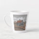 Colourful artwork of an old medieval house in the English countryside, with an old church in the background, and a couple of hares boxing in the foreground. Perfect for anyone who loves folk art.