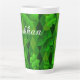 A caneca latte alta com tema irlandês com lugar para um nome em letra de script. Estilo verde e design de trevo de 4 folhas e nome em branco.
