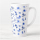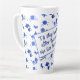 White latte mug with all around blue pattern of knitting needles, balls of yarn and cats pulling yarn. The sample text reads, “I’ll stop knitting after they row”, she lies to herself. Lots of fun knitting sayings can be found online so add your favorite to the space. If you need help fitting the wording e-mail me, or use the “customize further”. Choose either the small or tall latte mugs.