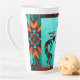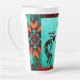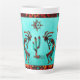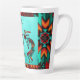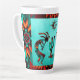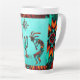 Este é um "Um dos tipos" único do sudoeste de Kokopelli Latte Mug! Ele apresenta dois Kokopelli sudoeste em Turquoise, laranja e preto tocando flauta e dançando em torno de um cacto sob o sol...num fundo turquesa! Design De Arte Original Pelo Artista Kerry Miller.