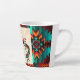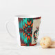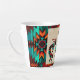 Este é um "Um dos tipos" único do sudoeste de Kokopelli Latte Mug! Ele apresenta dois Kokopelli sudoeste em Turquoise, laranja e preto tocando flauta e dançando em torno de um cacto debaixo do sol! Design De Arte Original Pelo Artista Kerry Miller.