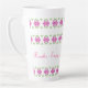 A xícara de designer cor-de-rosa florida com fundo branco pode ser alterada para qualquer cor para complementar seu estilo, a mensagem inspiracional pode ser alterada para sua própria, ou o texto pode ser removível nesta grande caneca latta.