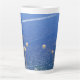Desejando estar em férias na ilha grega em um dia quente de verão, quando o sol está espumante no mar Mediterrâneo azul? Nessa impressionante foto, o mar ao largo da costa de Rhodes é o azul mais profundo, com o acordar branco de um veloz barco atravessando as ondas. A foto foi tirada do topo de um penhasco em Lindos, com flores silvestres bonito crescendo ao longo da borda.