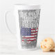 Crafted from durable ceramic and printed in vibrant full color, this tall latte mug combines practicality with a powerful message. Perfect for coffee, tea, or gifting, it’s a functional tribute to freedom.