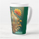 A whimsical floral design in shades of green and gold covers this unique Latte Mug.