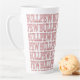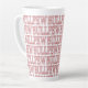 Caneca de leite alta com padrão vermelho de "BULLPEW".