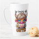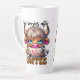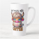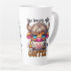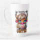 A playful and vibrant design showcases an adorable highland cow sipping coffee from a mug adorned with two hearts. A cheerful daisy adds charm to the scene, accompanied by colorful text that reads, "Life begins after coffee." This delightful design is featured on a variety of products, making it a perfect gift for coffee enthusiasts.