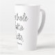 Celebre o amor e a amizade com esta caneca de café Dia de os namorados, com o texto "Whole lotta latte" em caligrafia negra, em fundo branco. Desenvolvido exclusivamente para você pelo Happy Dolphin Studio.