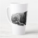 Um cão relaxado estica-se numa pose de foco suave que fixa o seu ritmo matinal. O olhar sombreado adiciona textura sem gritar. Ideal para cozinhas tranquilas, coletes de mesa, e talento pensativo.