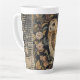 Caneca De Café Latte Lovely Owl in the Flowers Garden ,Gold Checkered ,