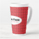 Engraçado caneca latte para Dia de as mães ou qualquer dia para honrar mães especiais! Fundo impressão de bandana vermelha com texto branco que diz "Mãe dos adolescentes. Pode haver vinho aqui.
