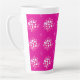 This latte mug features a vivid magenta background decorated with soft white and blush‑pink circular dot clusters, creating a dynamic, contemporary geometric motif.