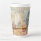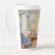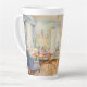 Na manhã de Natal Latte Mug - a cena é colocada numa sala com uma árvore decorada, presentes e uma mesa. As cores são uma aquarela suave com creme, azul, verde, vermelho e azul. Aproveite esta caneca de Natal / Natal a toda a temporada!