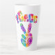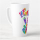 Groovy latte mug apresenta o estilo retrô, gravata, sinal de paz com texto curvo