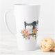 Nesta caneca de café, uma máquina de costura antiquada é cercada por buquês florais em tons de pêssego, laranja e amarelo. A imagem é impressa em dois lados da caneca, com seu texto personalizado em cinzas escuras entre as imagens. Uma bela imagem retrô que é especialmente apropriada para quem ama costurar!