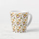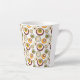 Esta caneca tem uma design moderna do século médio de círculos concêntricos em ouro, verde e marrom sobre um fundo branco.