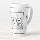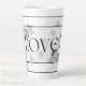 "Amor", caneca latta em design floral preto e branco.