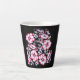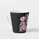 Esse gráfico floral é exibido em um padrão de diamante, com aglomerados de flores, pétalas e folhas, em mudo, de cores de; rosa, fuschia, lavanda, mauve, verde e branco contra um pano de fundo de preto.