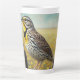 Uma Meadowlark com um campo de flores silvestres amarelas no fundo